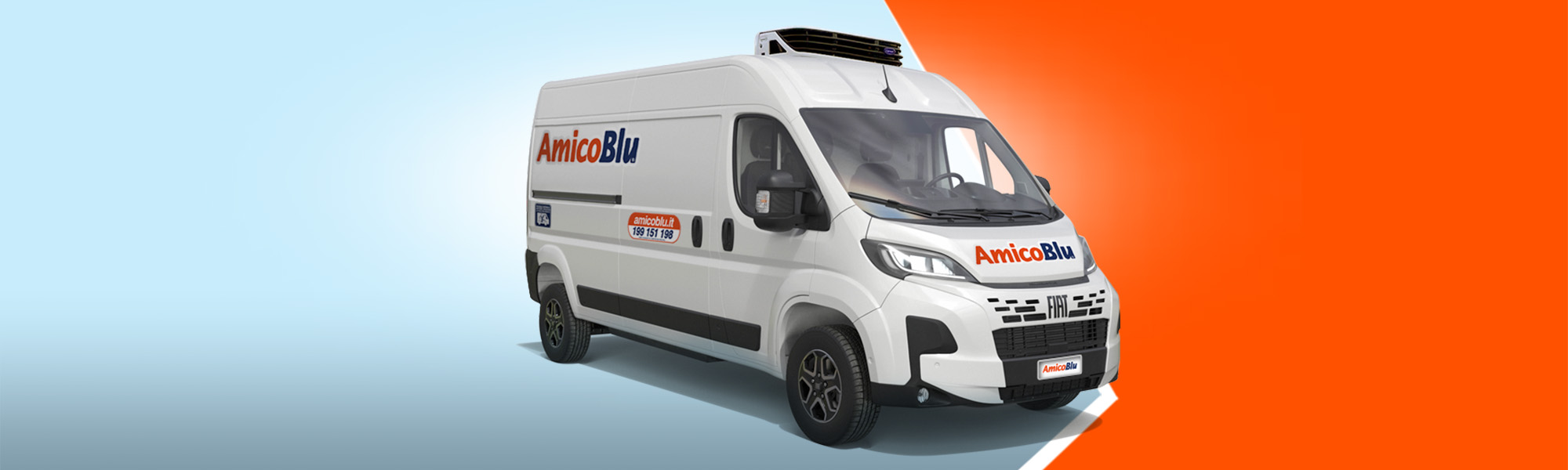 Prenota ora il noleggio di un furgone isotermico della flotta AmicoBlu. Non perdere le offerte in corso, e guida il furgone speciale ad un prezzo vantaggioso.